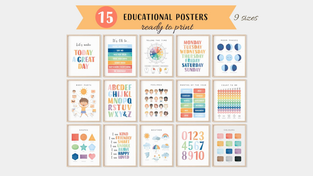 Set of 15 Rainbow Educational Posters